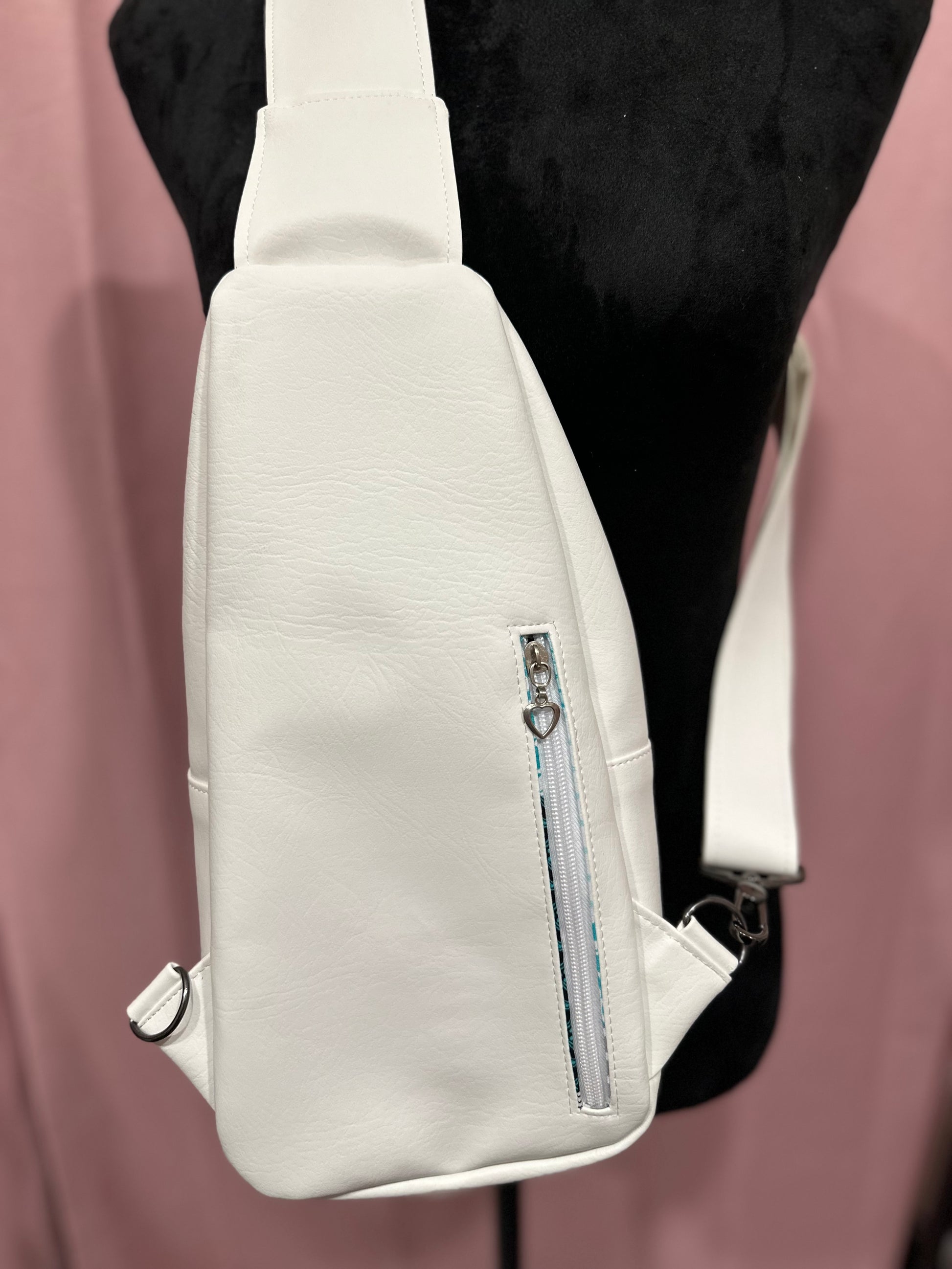 The Cristine has a predominantly white body, with a wide strap that allows it to be worn across the body.