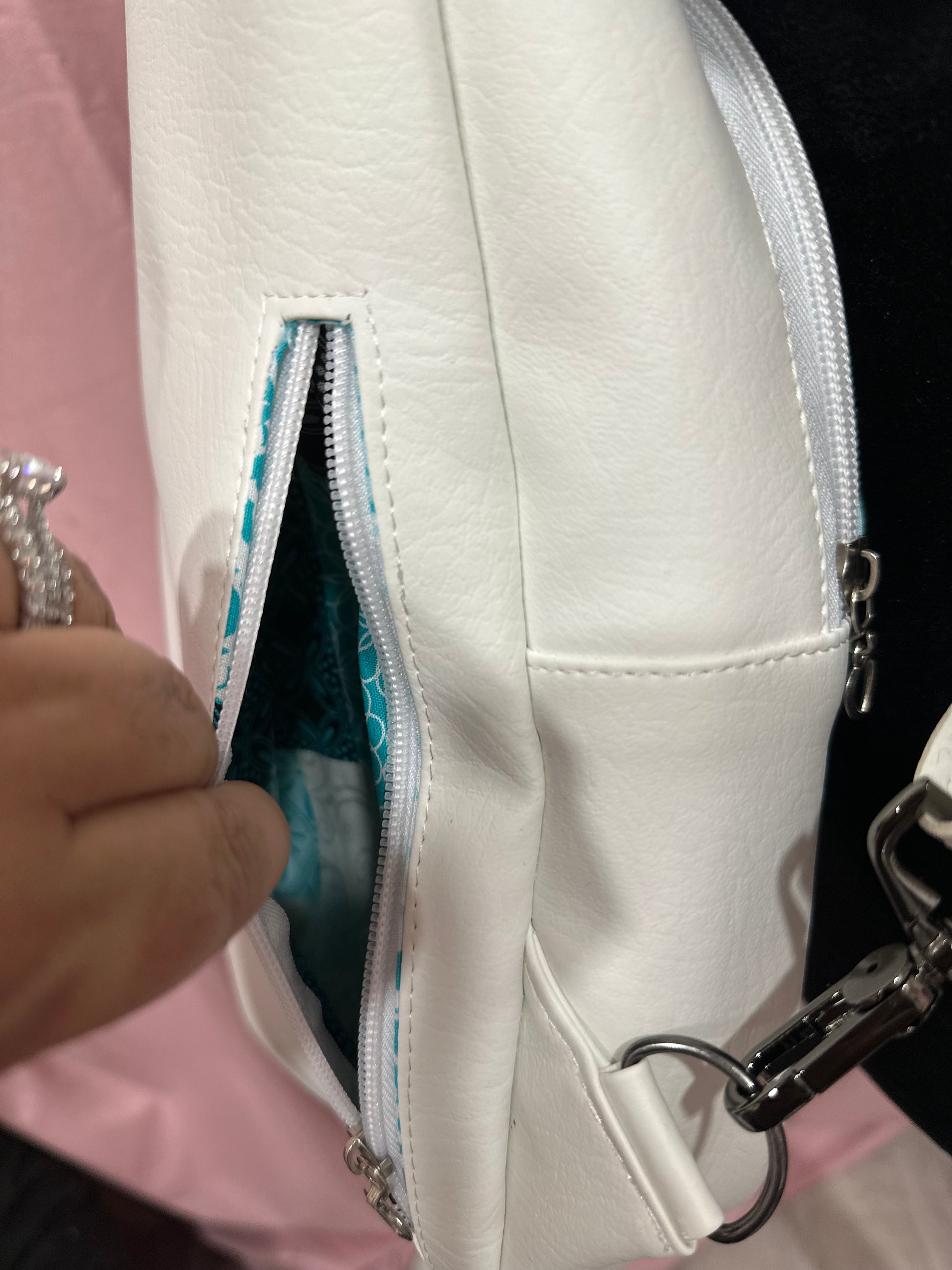 The back of the bag features a zippered pocket to keep items safe and concealed.