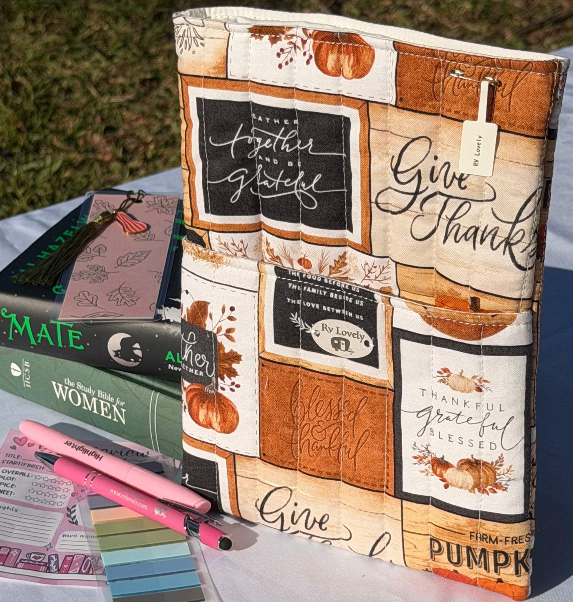 đ Large âGive Thanksâ Book & Tablet Sleeve â Playful + Cozy Autumn Vibes